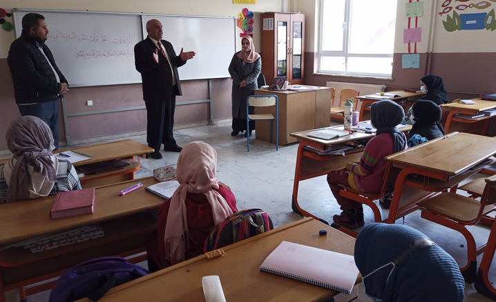 İlçe Müftüsü İbrahim Köksal, öğrencilerle bir süre sohbet etti.