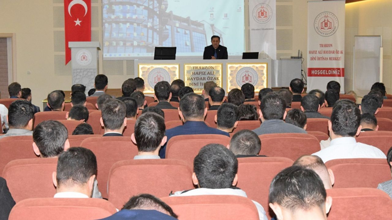 Espiye İlçe Müftüsü Haki Özgül, Trabzon Hafız Ali Haydar Özak Dini İhtisas Merkezindeki aday din görevlilerine tecrübe paylaşımında bulundu.