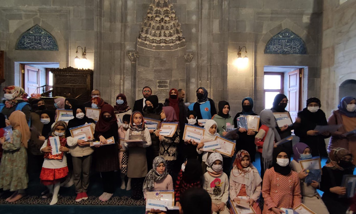 Çevrimiçi programlara da katılan çocuklar, tarihi Lalapaşa Camii’nde düzenlenen törenle ödüllendirildi.