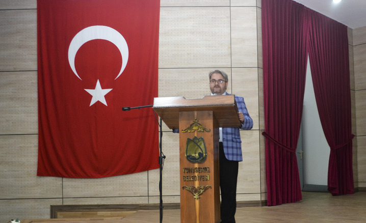 Açış konuşmasını yapan İl Müftüsü Mustafa Soykök, "Bugün başarılarıyla, inanç ve gayretiyle bizlere örnek olan milli yüzücü yazar Sefa Yurtkölesi kardeşimizi dinlemek üzere toplandık. Kendisi bizlere azmin, sabrın, mücadelenin ve hepsinden önemlisi şükretmenin ne büyük mutluluk olduğunu öğretiyor." dedi.