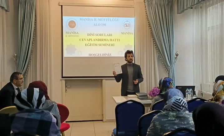 Manisa İl Müftülüğü Aile ve Dini Rehberlik Merkezi (ADRM) tarafından "190 Dini Soruları Cevaplandırma Hattı Eğitim Semineri" düzenlendi.