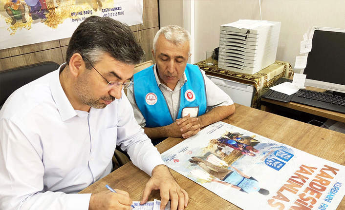 Erhan, Türkiye Diyanet Vakfının bu yıl vekâletle kurban kesim bedelinin yurt içinde 890 TL, yurt dışında ise 725 TL olarak belirlediğini hatırlatarak Vakfa kurban bağışında bulundu.