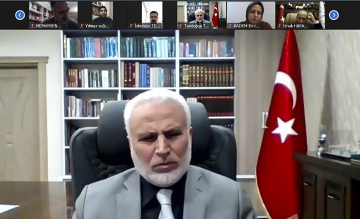 Koronavirüs tedbirleri kapsamında çevrimiçi olarak düzenlenen toplantıda konuşan Ağrı İl Müftüsü ve Türkiye Diyanet Vakfı Ağrı Şube Başkanı Tandoğan Topçu, “TDV ve Müftülük olarak bizler eğitim adına her projeyi gerek cami vaazlarında gerekse sosyal medya hesaplarımızdan desteklemekte ve katkı sunmaktayız. Dinimiz, insanın daima arayış içinde olması gerektiğini, eğitim ve öğretimle her zaman iç içe bulunmasını istemektedir. Başkanlığımız koordinesinde sayısız eğitim projesini hayata geçirdik ve çalışmalarımızı devam ettirmekteyiz. Kurumum adına, doğru eğitim için faaliyet gösteren kurumlara ve katkı sunan destek veren herkese teşekkür ederim.” dedi.