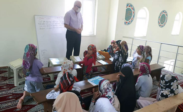 Yaz Kur’an Kursları ile 4-6 Yaş Grubu Kur’an Kursları'nı ziyaret eden İlçe Müftüsü Necdet Kahveci, çocuklarla bir süre sohbet etti.