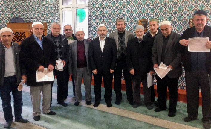 Programda, Kur’an-ı Kerim öğrenen camii cemaatine katılım belgeleri verildi.