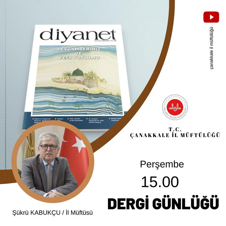 İl Müftülüğü resmi sosyal medya hesapları üzerinde canlı yayınlanacak olan programda müftü Kabukçu rehberliğinde Diyanet Dergileri analiz edilecek.