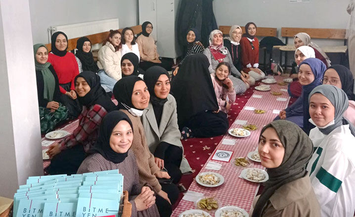 Bu kapsamda Küplüce Camii Kız Kur'an Kursu’nda düzenlenen programda gençlerle bir araya gelen Kur'an Kursu Öğreticisi Hanife Karakuş, gençlerle sohbet ederek daha önce hediye edilen kitap üzerine tahlil yaptı.