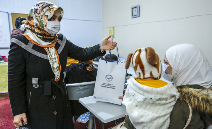 Hayırseverlerin desteği ile hazırlanan hediye paketleri, din görevlileri tarafından göçmen ailelere ulaştırıldı.