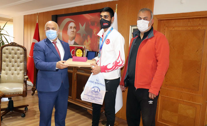 U15 Avrupa ve Dünya Şampiyonası Milli Takım Güreş seçmelerinde 57 kiloda üçüncü olan ve 6. Uluslararası Türkiye Açık Kick Boks Avrupa Kupası'nda Elazığ’ı 5 altın, 3 gümüş ve 4 bronz madalya ile temsil eden sporcuları kabul eden Müftü Aydın, sporcuları tebrik ederek başarılarının devamını diledi.