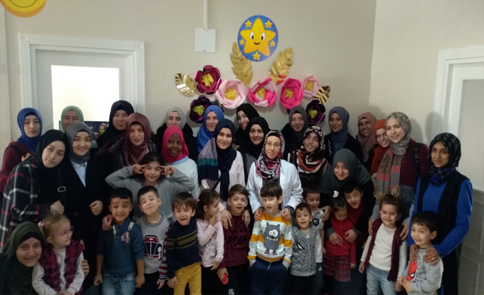 Öte yandan kız öğrenci grubu Edremit Müftülüğüne bağlı Şentürkler Camii 4- 6 Yaş Kur’an Kursunu ziyaret ederek minik öğrencilerle bir araya geldi.