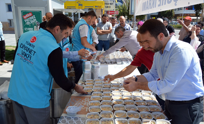 Çorum İl Müftülüğü ile Türkiye Diyanet Vakfı Çorum Şubesi, Muharrem ayı dolayısıyla vatandaşlara aşure ikram etti.