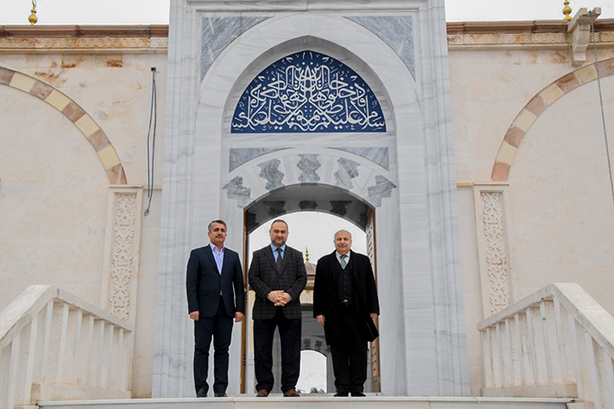 Üniversite yerleşkesinde Diyanet İşleri Başkanlığı ve Türkiye Diyanet Vakfı tarafından inşa edilen Kampüs Camii'nde incelemelerde bulunan Müftü Taşcı ve Rektör Gönüllü, yetkililerden cami hakkında bilgi aldı.