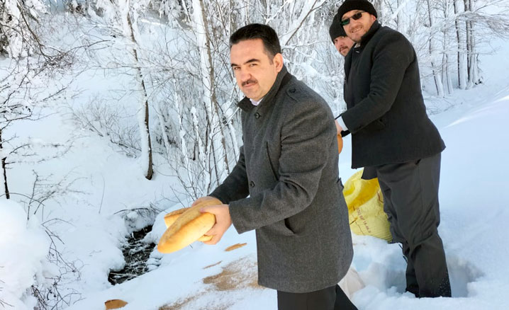 Zara İlçe Müftülüğü, kentte etkili olan kar yağışı ve soğuk hava nedeniyle yiyecek bulmakta güçlük çeken yaban hayvanları için doğaya yem bıraktı.
