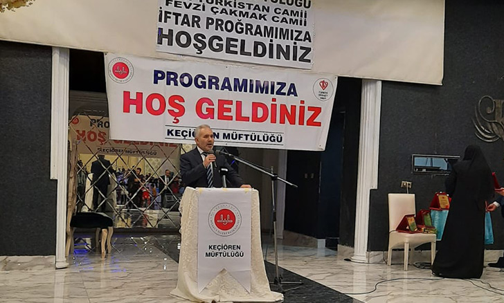 200 yetimin iftar sofrasında buluştuğunu aktaran Keçiören İlçe Müftüsü Mehmet Şahin,"Rasulullah, ‘Ben ve yetimi kollayıp gözetleyen kimse, cennette böyle (yan yana) olacağız’ buyurdu ve işaret parmağıyla orta parmağını biraz açarak işaret etti. Bu hadis-i şerif ışığında elimizden geldiği kadar öksüz ve yetim yavrularımızın gönlüne dokunabilmeyi hedefliyoruz. Peygamberimizin emaneti olan yetimlerimiz gülerse dünya güler. Biz onları sevindirir, gönüllerini hoşnut edersek, Rabbimiz de bizi hoşnut kılacak ve sevindirecektir. Yetim yavrulamıza destek olmak ve onlara yalnız olmadıklarını hissettirmek için bu organizasyonu tertip edip destek veren herkese teşekkür ediyorum." dedi.