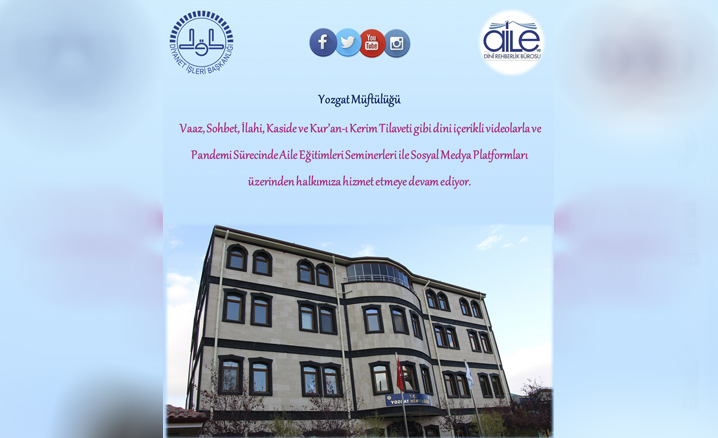 İl Müftülüğünce hazırlanan vaaz, sohbet, ilahi, kaside ve Kur’an-ı Kerim tilaveti gibi dini ve eğitici programlara Yozgat Müftülüğü sosyal medya hesapları üzerinden vatandaşların da erişebileceği ifade edildi.