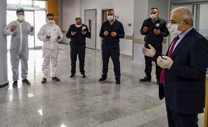Koronavirüsle mücadelede büyük bir özveri ile çalışan Emniyet, Afad ve 112 Acil Çağrı Merkezi çalışanlarına desteklerini ileten İl Müftüsü Yusuf Akkuş; "Gün birlik ve beraberlik günü, tüm din görevlilerimizle her zaman sizlerin yanında, halkımızın hizmetindeyiz. Yoğun bir çalışma içerisinde olduğunuzu biliyoruz. Tüm çalışanlarınıza Allah’tan kolaylıklar diliyorum." dedi.