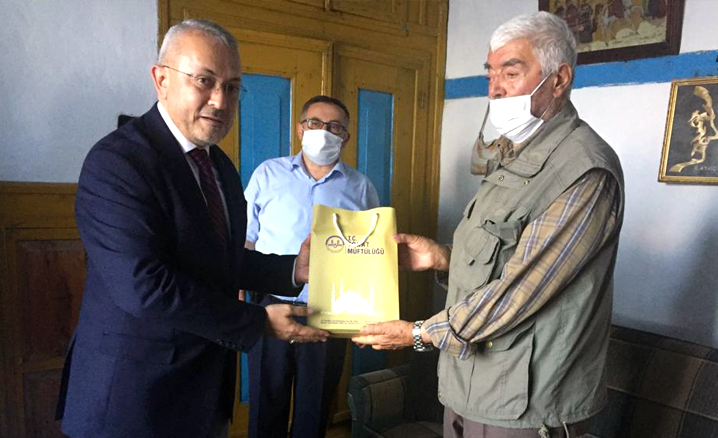 Ziyarette Müftü Pamuklu, Temel'e Kur'an-ı Kerim hediye etti.