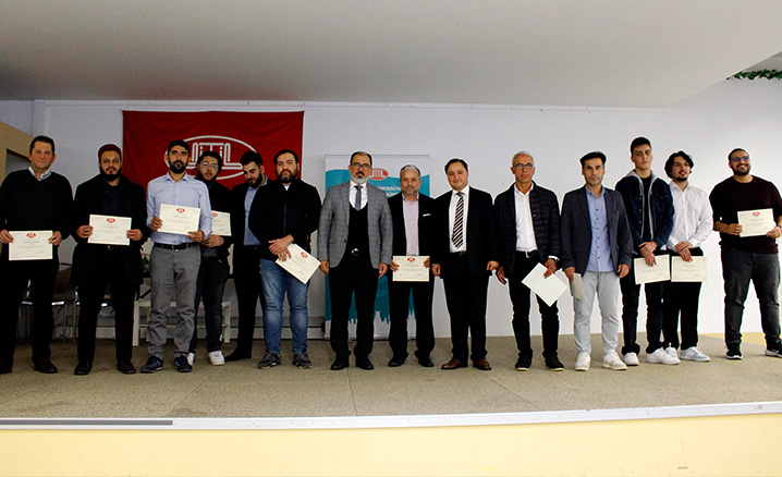 Programda Münster DİTİB Dini Danışma Kurulu tarafından yapılan sınavda başarılı olan 132 fahri öğreticiye yeterlik belgesi verildi.