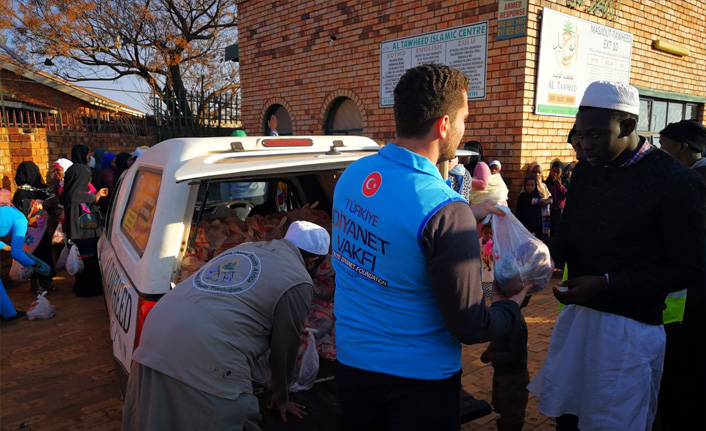 Türkiye’de ve 149 ülkenin 423 bölgesinde vekâletle kurban kesim çalışmaları gerçekleştiren Türkiye Diyanet Vakfı, birlikte çalıştığı Awqaf SA ile birlikte hayırsever milletimizin vekâlet verdiği bin 750 hisse kurbanı Güney Afrika’da keserek 18 bin ihtiyaç sahibi aileye ulaştırdı.