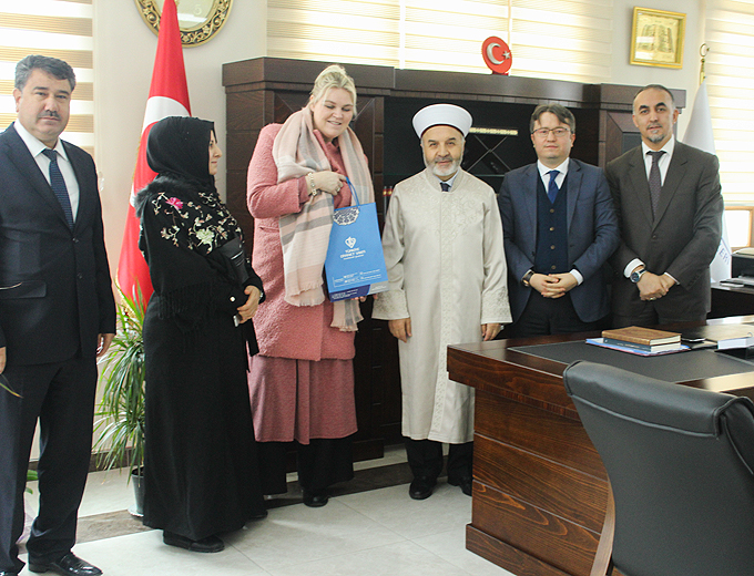 Merasim sonunda İl Müftüsü İsmail İpek Leyla Macit’e “İhtida Belgesi” ile birlikte Kur’an-ı Kerim’in İngilizce meali Diyanet İşleri Başkanlığı yayınlarından çıkan çeşitli kitaplar hediye etti.