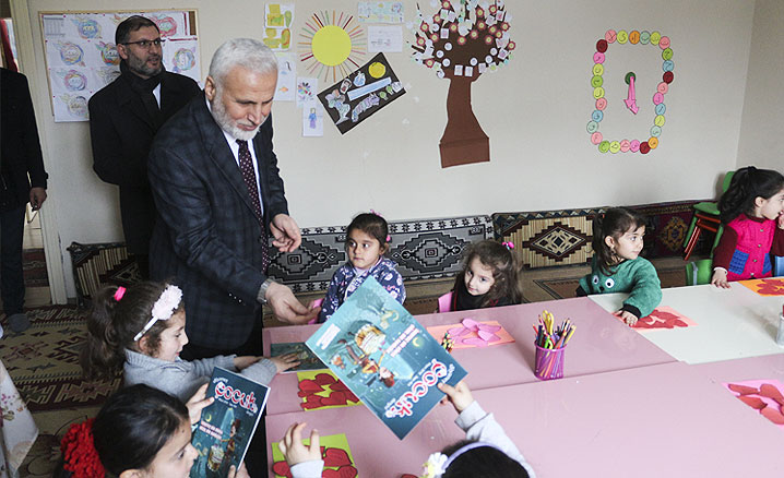 Öte yandan Mehmet Emin Aybay 4-6 Yaş Grubu Kur’an Kursu’nu ziyaret eden Ağrı İl Müftüsü Tandoğan Topçu, buradaki çocuklara da Diyanet İşleri Başkanlığının çocuklara özel yayınlarından hediye etti.