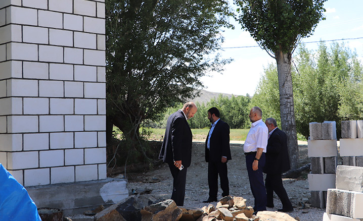 2022 yılında ibadete açılması planlanan Cami inşaatında incelemelerde bulunan İl Müftüsü Remzi Pehlivan, Gürün Müftüsü Dr.Hüseyin Bayrak'tan cami hakkında bilgi aldı.