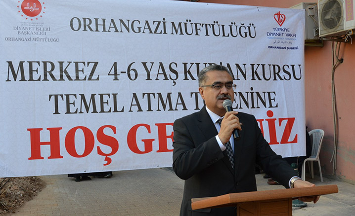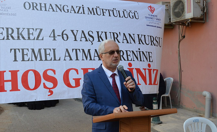 Mushafları İnceleme ve Kıraat Kurulu Başkanı Hafız Osman Şahin'in Kur'an-ı Kerim tilaveti ile başlayan törenin açılış konuşmasını yapan İlçe Müftüsü Yusuf Tuna, "Hayırsever vatandaşların destekleri ile yapılacak olan Kuran Kursu’nu hızlı bir şekilde tamamlamayı planlıyoruz. Orhangazi’de 8 ayrı kursta 200’ün üzerinde 4-6 yaş öğrencisi eğitim görmektedir. Amacımız İlçemizdeki 4-6 yaş Kur'an Kursu sayısını arttırmaktır. Törene katılan ve inşaatımızın yapımına destek veren hayır sahiplerine çok teşekkür ediyorum." dedi.
