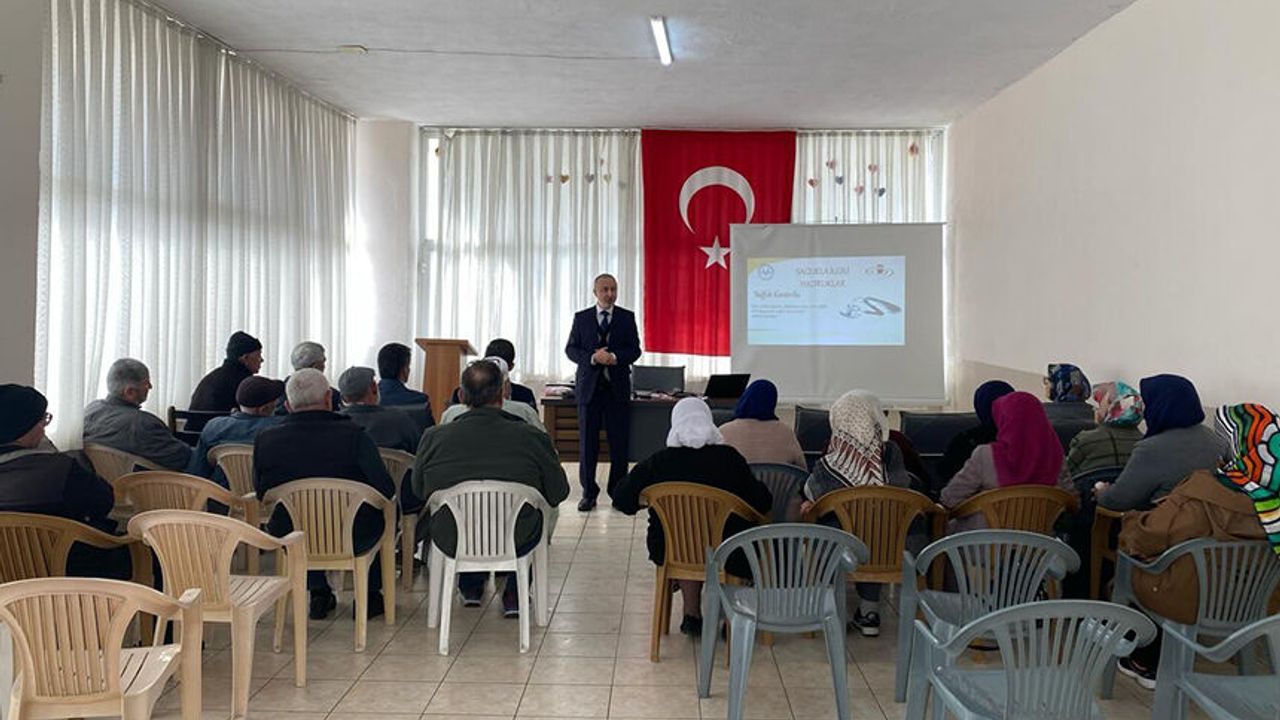 Seminerde İlçe Müftüsü Mahmut Atıcı, İlçe Vaizi Ahmet Ali Kurt ve emekli Kur’an Kursu Öğreticisi Sümeyye Atıcı tarafından hac ibadetinin rükünleri, uygulama esasları ve bu kutsal yolculuğun manevi boyutuna dair önemli bilgiler paylaşıldı.