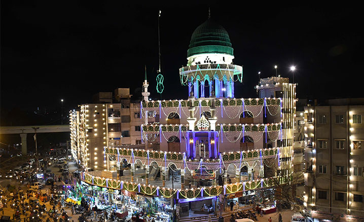 Peygamberimizin (sas) dünyaya geldiği gün olarak kutlanan Mevlid Kandili sebebiyle Pakistan'ın Karaçi kentinde camiler, cadde ve sokaklar ışıklandırıldı.