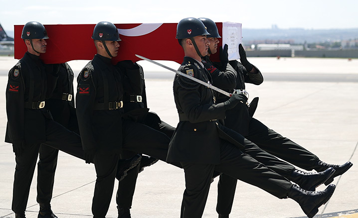 Şehitler, Teğmen Abulkadir Güler, Uzman Çavuşlar Bican Kapılay, Hüseyin Cankaya, Onur Doğan ile Sözleşmeli Er Celal Tekedereli için Şerafettin Elçi Havalimanı'nda tören düzenlendi.