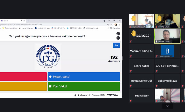 Pendik İlçe Müftülüğü Gençlik Koordinatörlüğü tarafından Ramazan ayında öğrencilere yönelik çevrimiçi bilgi yarışması düzenlendi.