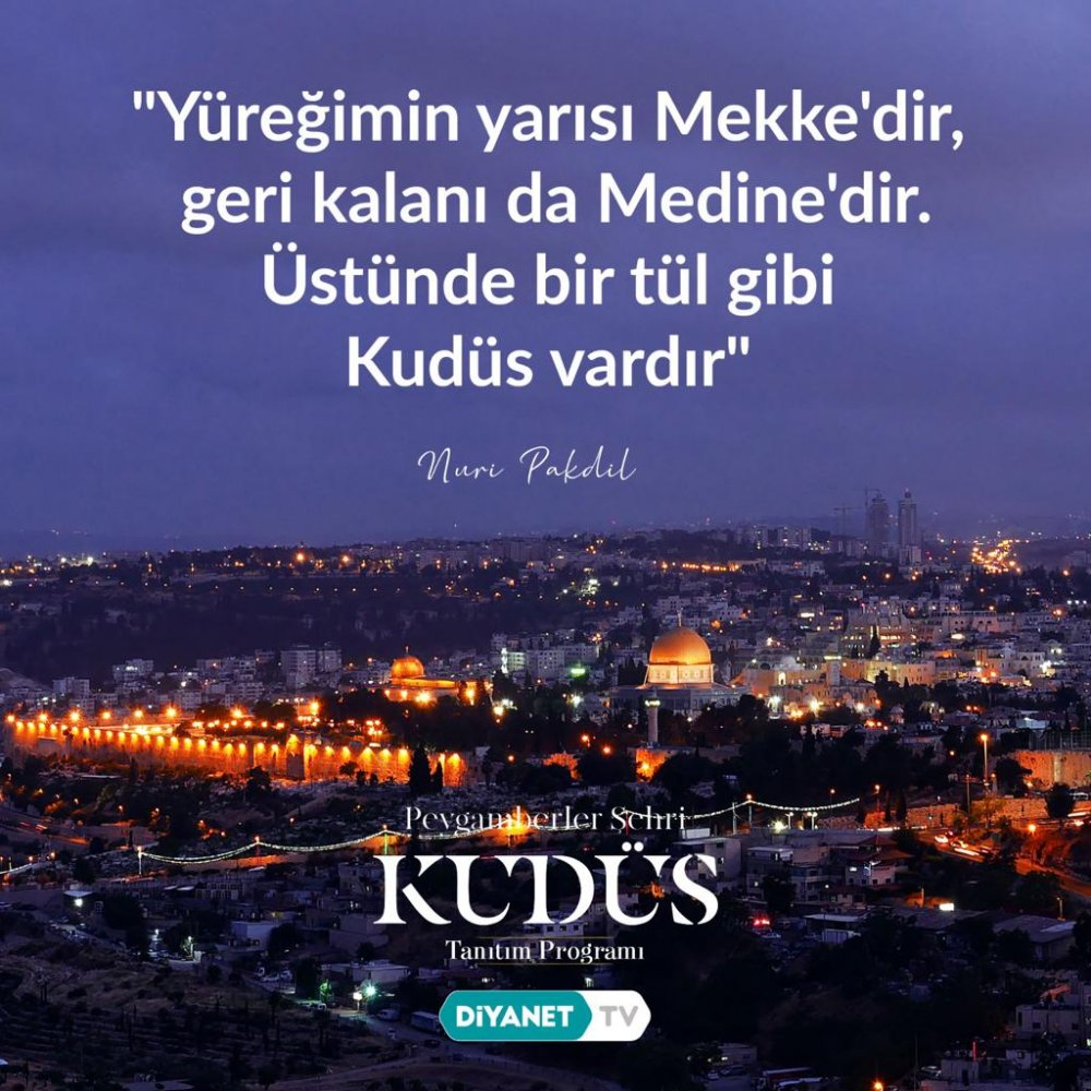 "Yüreğimin yarısı Mekke'dir, geri kalanı da Medine'dir. Üstünde bir tül gibi Kudüs vardır" [Nuri Pakdil]