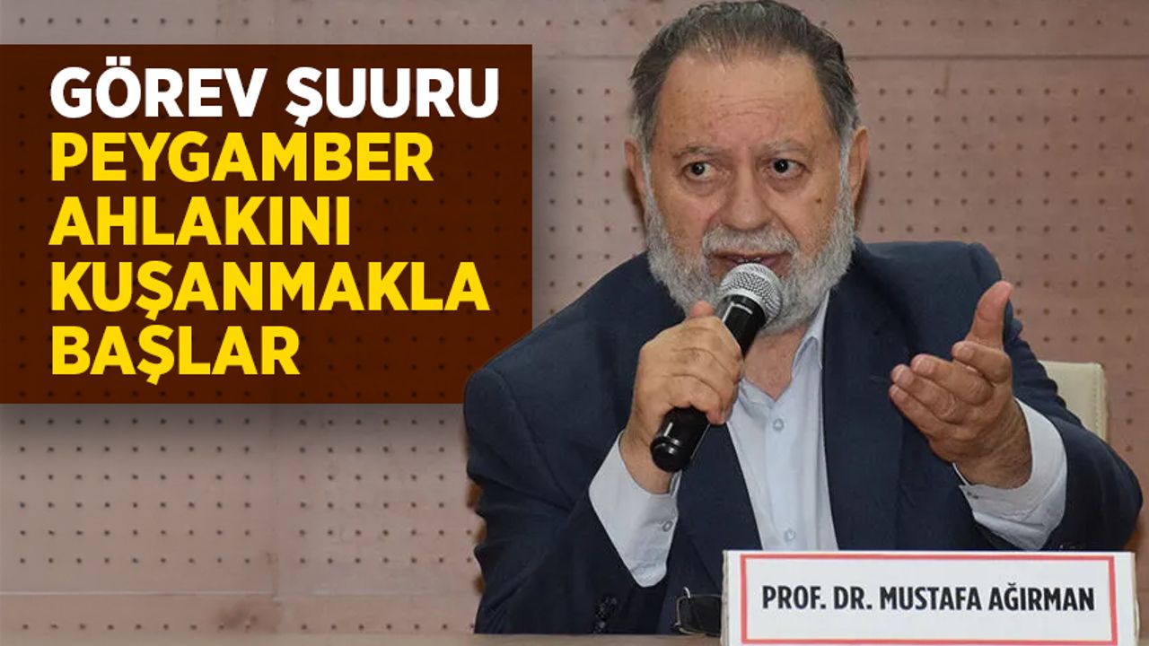 Prof. Dr. Mustafa Ağırman, din görevlisinin sözünü sakıncaya mahal vermeden söylemesi gerektiğini belirterek, "Görev şuuru, Peygamber Efendimiz’in (sas) ahlakını kendisine rehber edinmesiyle başlar. Zira peygamber varisi olmak büyük bir mesuliyet gerektirir. Camilerimizde, Kur’an kurslarımızda görev yapan her din görevlisi, bu mirasın taşıyıcısıdır ve bu taşıyıcılığı ancak güzel ahlakla, rahmet ve merhamet diliyle hakkıyla temsil edebilir. Yüce dinimiz İslam’ı, Peygamberimiz gibi anlayıp, yaşamalı ve yaşatmanın gayretinde olmalıyız. Bunlar sadece hitabetin değil, hal ve davranışların da aynı güzellikle bezenmesiyle mümkün olabilir. Zira Kur’an bir rahmettir, Hz. Peygamber bir rahmettir, yağmur nasıl toprağı canlandırırsa, rahmet dili de kalpleri diriltir. Her söz, güzelliklerle tezyin edilmeli, her nasihat hikmetle buluşmalıdır. Din görevlisi ve gönüllülerimizin dili yumuşak, gönlü geniş, sözü tatlı olmalıdır." dedi.
