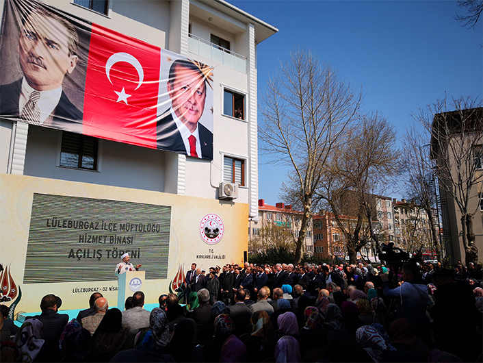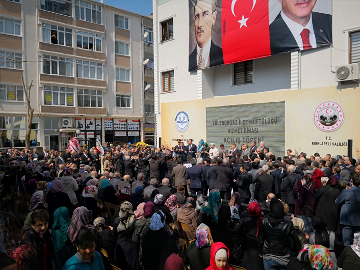 İl Buluşmaları kapsamında Kırklareli'de bulunan Diyanet İşleri Başkanı Prof. Dr. Ali Erbaş ve beraberindeki heyet, Lüleburgaz İlçe Müftülüğü Hizmet Binası açılışına katıldı.