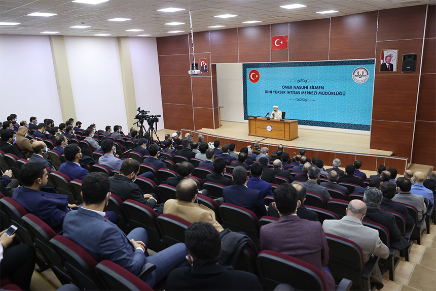 Burada kursiyerlere hitap eden Diyanet İşleri Başkanı Erbaş, Dini Yüksek İhtisas Merkezlerinin ilim üreten bir yer olması nedeniyle Diyanet İşleri Başkanlığının en önemli birim birimlerinden birisi olduğunu söyledi.