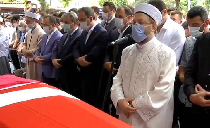 Cenaze namazı öncesi bir konuşma yapan Diyanet İşleri Başkanı Prof. Dr. Ali Erbaş, Enbiya Sûresi 35'inci ayetini okuyarak, "Genellikle tabutların üzerine örtülen örtülerde biraz önce okuduğum Ayet-i Kerime yer alır. 'Her nefis ölümü tadacaktır. Sonra bize döndürüleceksiniz.' İşte bu Ayet-i Kerime sadece cenazelerde hatırlanmamalı, her zaman hatırlanmalı. 'Ölüm kaşla göz arasındadır.' deriz ya. Esasında bizim ata sözlerimiz, aytelerden ve hadislerden süzülerek ortaya çıkmış sözlerdir. İşte kaşla göz arasında." dedi.