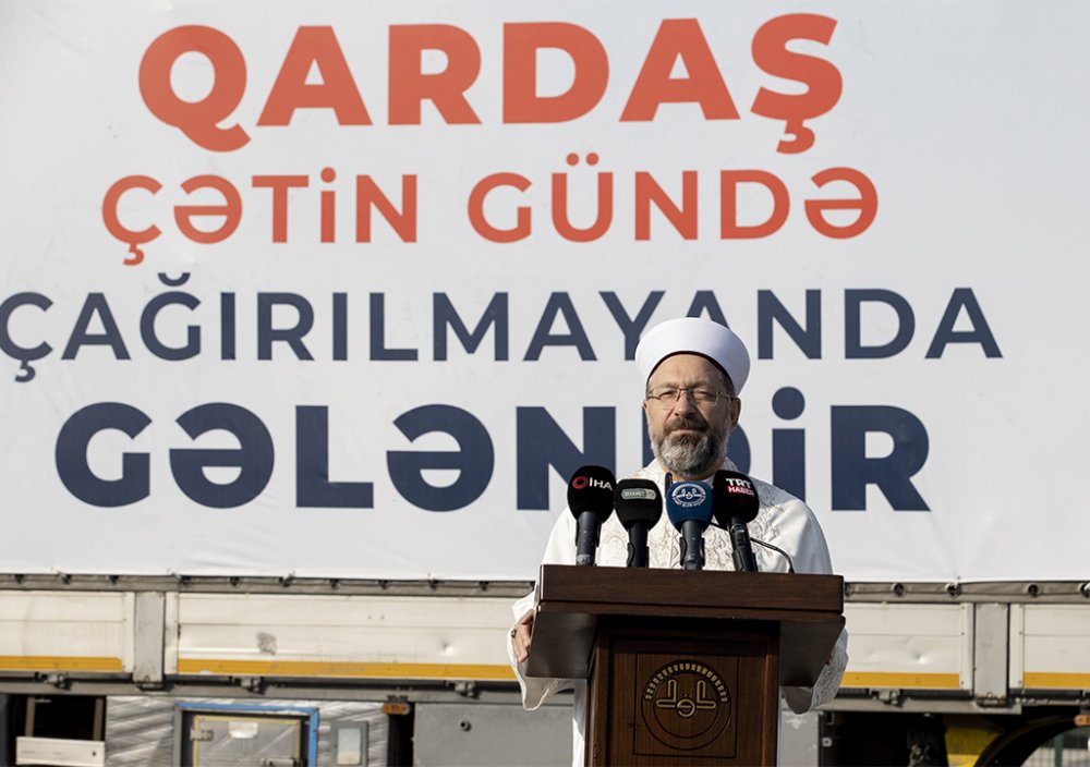 Diyanet İşleri Başkanı Prof. Dr. Ali Erbaş, Ahmet Hamdi Akseki Camisi'nde düzenlenen uğurlama töreninde, ihtiyaç malzemelerinin bulunduğu tırların, Türkiye'nin Azerbaycanlı kardeşlerinin yanında yer aldığının göstergesi olduğunu belirtti.