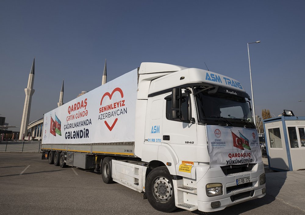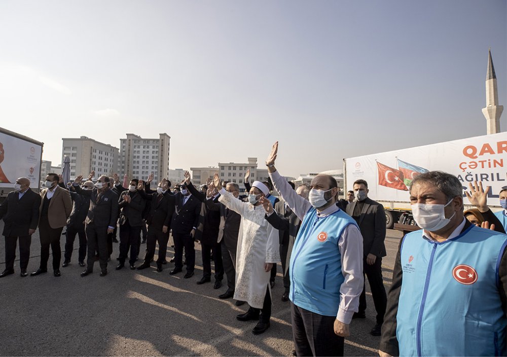 Türkiye Diyanet Vakfı (TDV) tarafından hazırlanan gıda, oyuncak ve tıbbi malzemeleri taşıyan 6 tır, Azerbaycan'a gönderildi.