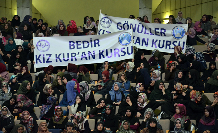 Konya ve ilçelerindeki Kur’an kurslarında hafızlığını tamamlayan 320 kız öğrenci için Mevlana Kültür Merkezi Sema Salonunda “Hafızlık İcazet Merasimi” yapıldı.