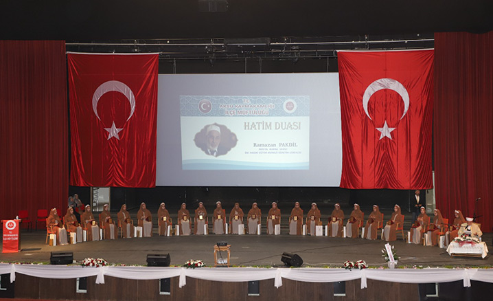 Aksu İlçe Müftülüğüne bağlı Fahriye Hatun Kız Kur’an Kursu ile Şükrullah Kız Kur’an Kursu'nda hafızlık eğitimini tamamlayan 25 öğrenci için "Hafızlık İcazet Merasimi" düzenlendi.