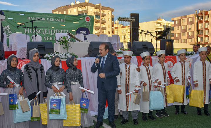 Törende bir konuşma yapan Vali Ali Hamza Pehlivan, "hafızlığını tamamlayan öğrencilerin, bölgelerini Kur'an nuru ile aydınlattıklarını" söyledi.