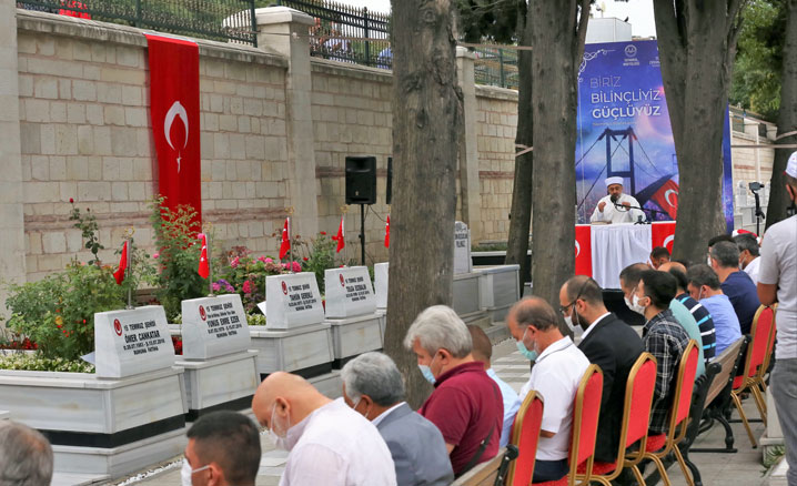 İstanbul Müftülüğü ve Türkiye Diyanet Vakfı İstanbul Şubesi iş birliğinde, Edirnekapı 15 Temmuz Demokrasi Şehitliği’nde şehitlerimiz için hatm-i şerif okundu, dua edildi.
