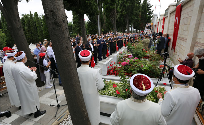 Edirnekapı 15 Temmuz Demokrasi Şehitliği’nde İstanbul Valisi Ali Yerlikaya ve İl Müftüsü Prof. Dr. Mehmet Emin Maşalı’nın katılımıyla düzenlenen program; Eyüp Sultan Camii Başimam Hatibi Metin Çakar, Eyüp Sultan Camii İmam Hatibi Beytullah Özdemir, Süleymaniye Camii Başmüezzini Abdussamet Yazıcı ve Hırka-i Şerif Camii Müezzini Hami Ediz tarafından şehitlerin kabirleri başında okunan Kur’an tilavetiyle başladı.