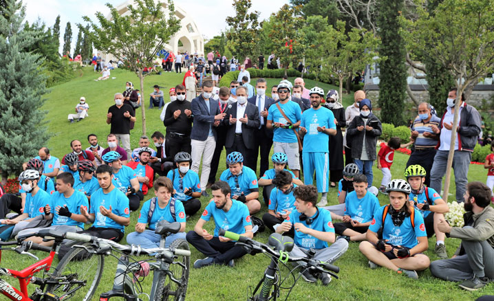 Türkiye Diyanet Vakfı İstanbul Şubesinin 55 üyesi, Şehzadebaşı Camii’nden hareket ederek bisikletleriyle 15 Temmuz Şehitler Makamı'na geldi.