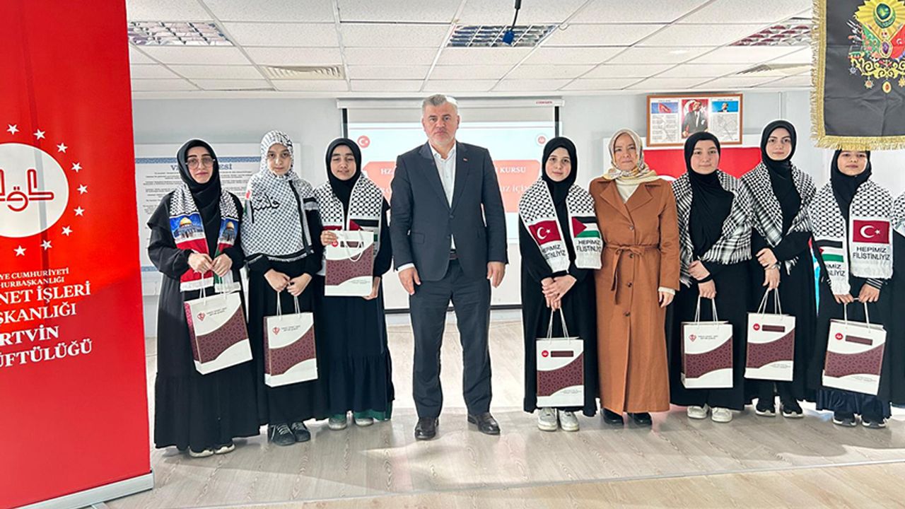 Artvin Anadolu İmam-Hatip Lisesi Konferans Salonundaki gösteriye İl Müftüsü Ertuğran Mehmet Soylu ve İl Müftü Yardımcısı Bahar Canset Dündar da katıldı.