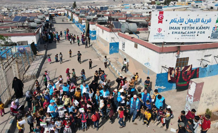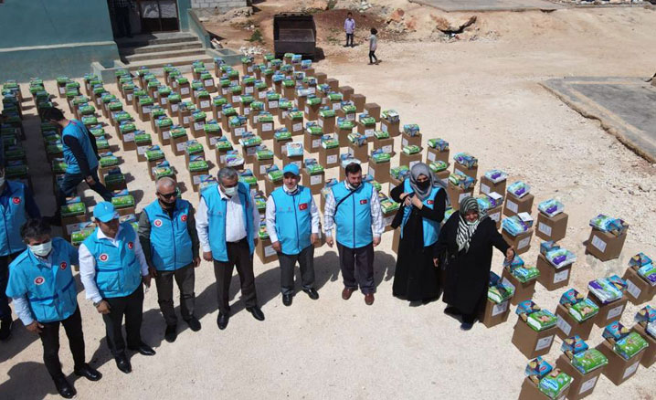 Yardım paketlerini ulaştırmak üzere İdlib’e giden din görevlileri ve TDV gönüllüleri, çadır kentlerde yaşayan savaş mağduru ailelerle buluştu.