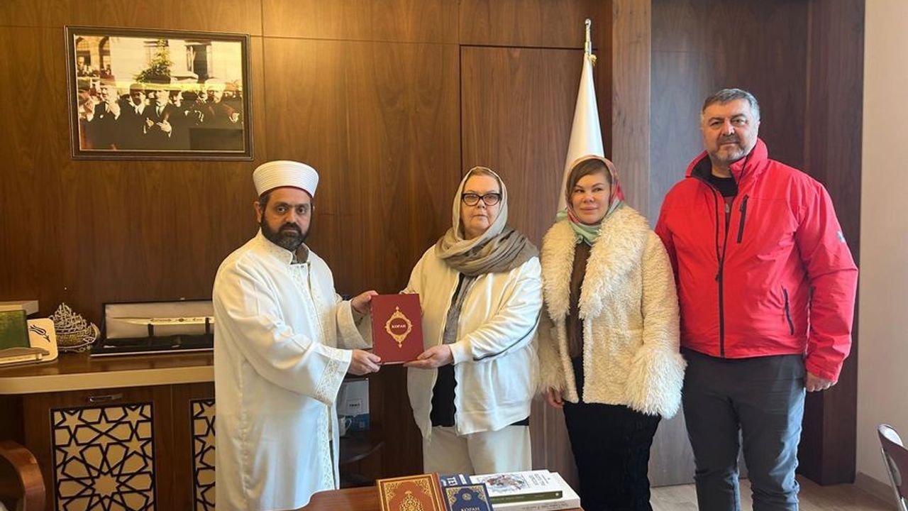 Merasim sonunda İhtida Belgesi ile birlikte Diyanet İşleri Başkanlığına ait Rusça ve Türkçe olarak basılmış Kur’an-ı Kerim ve Meali takdim edildi.
