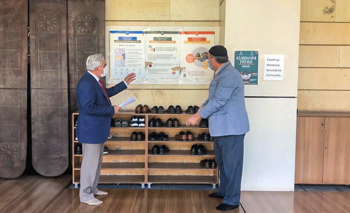 Aytaç, cami içerisinde veya dışarıda kapasitenin aşılmaması, yığılmanın önlenmesi, mevlit okutulmaması, taziye yapılmaması, caminin her gün temizlenmesi, kapı kolları vb. silinmesi, klima çalıştırılmaması, cami içerisinde mümkün olan en kısa surede ibadetlerin yapılması büyük önem arz etmektedir. Tokalaşma ve musafaha yapılmaması gibi kuralların sıklıkla cemaate hatırlatılması; özellikle maske, mesafe ve seccade ile camiye abdestli gelinmesi ve temizlik konusu sık sık dile getirilmelidir.” ifadelerini kullandı.