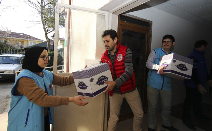 Suriye’deki çadır kentlerde yaşam mücadelesi veren mülteci aileler için başlatılan yardım kampanyası kapsamında hayırseverlerin desteği ile temin edilen insani yardım malzemeleri gönüllüler tarafından tıra yüklendi.