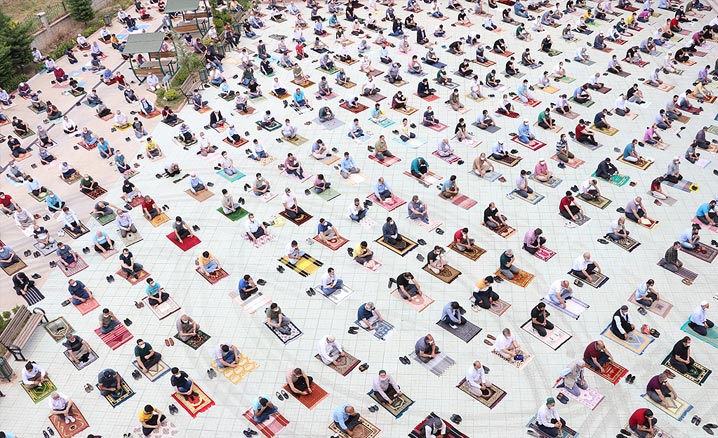 Erken saatlerde camiye gelen vatandaşlar yanlarında seccade getirirken, getirmeyenlere cami görevlilerince tek kullanımlık seccade verildi. Bazı vatandaşlar ise namazlarını Sultanahmet Meydan'ındaki çimenlerin üzerinde kıldı.